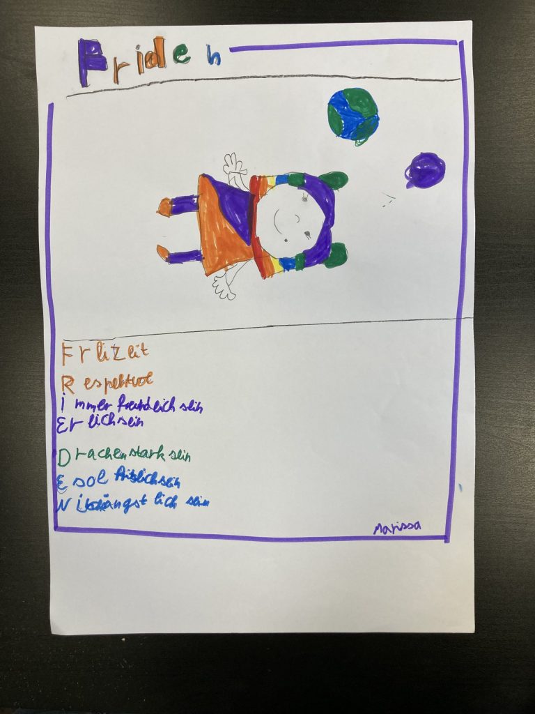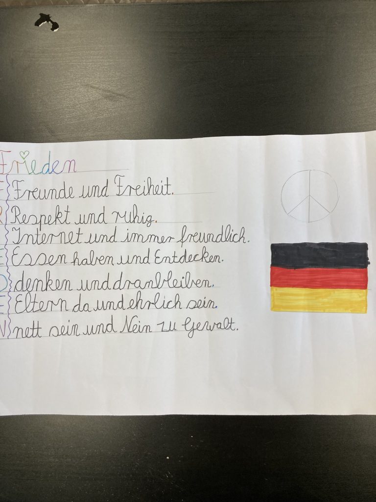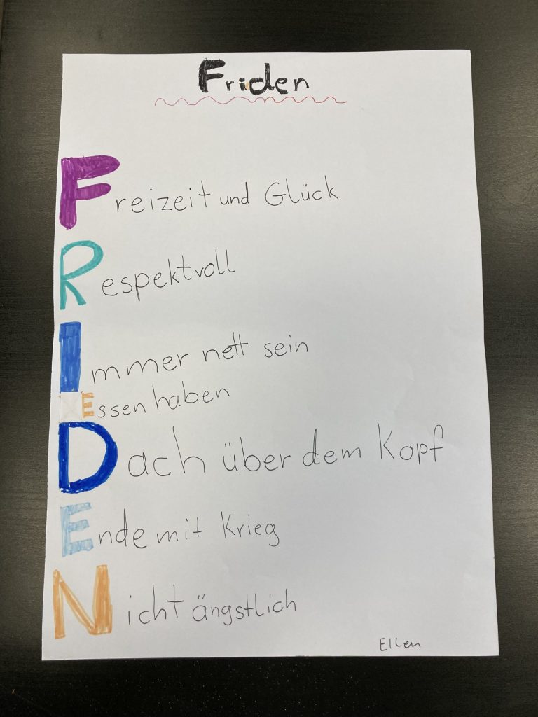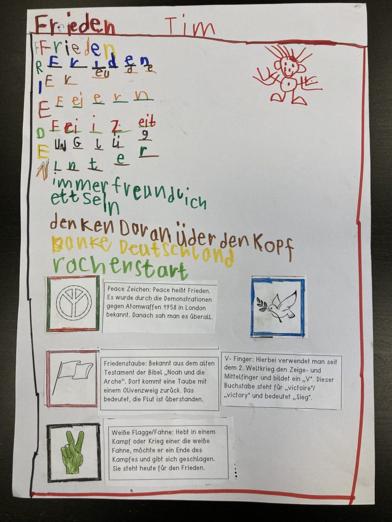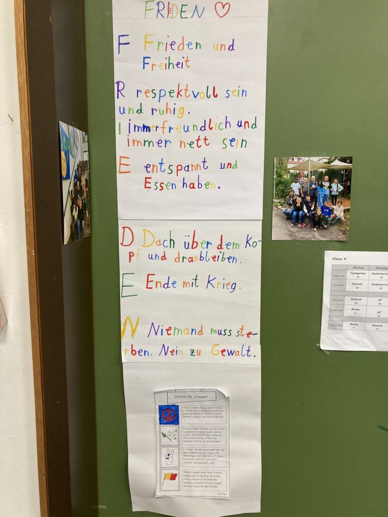 Klasse 4 hat sich in den letzten Wochen mit dem Thema Frieden beschäftigt.